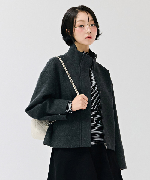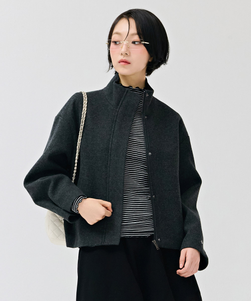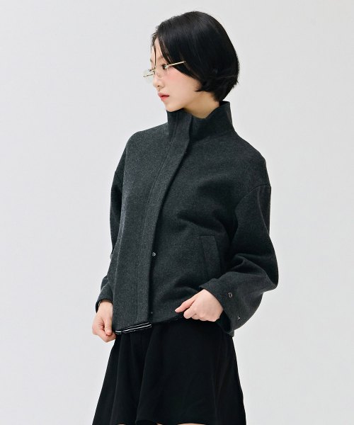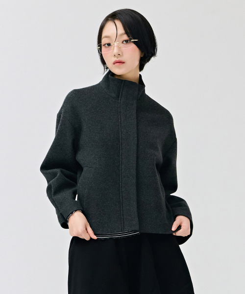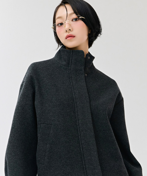 여성 울라이크 하이넥 반코트-차콜