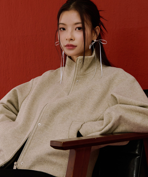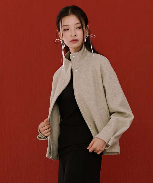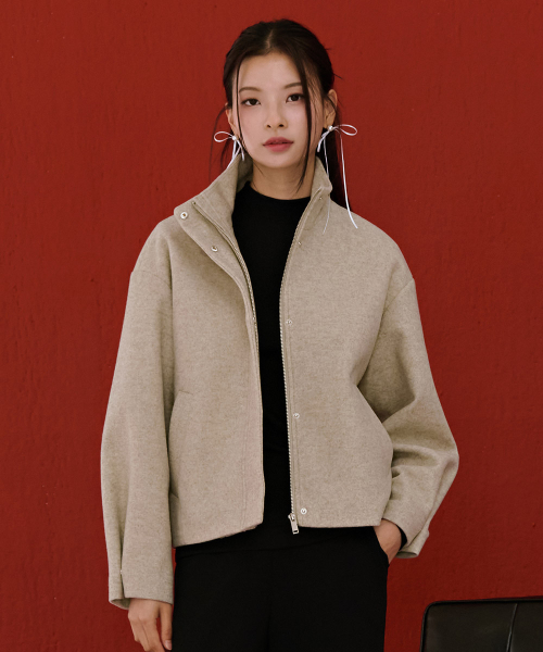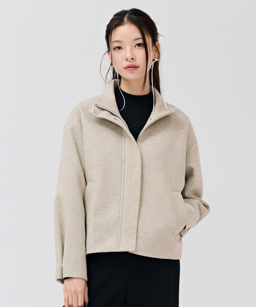 여성 울라이크 하이넥 반코트-베이지