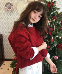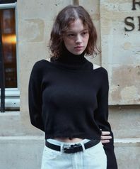 원 숄더 레이어드 니트 탑 ( 네이비 )