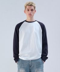 릴렉스드 립 커프스 래글런 긴소매 티셔츠 [화이트/네이비]