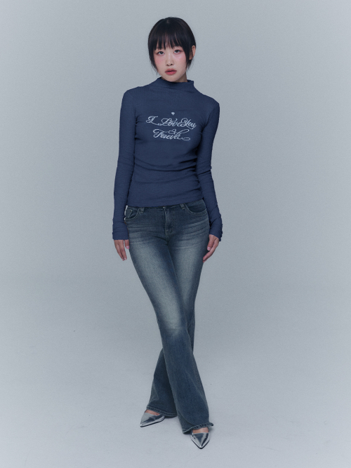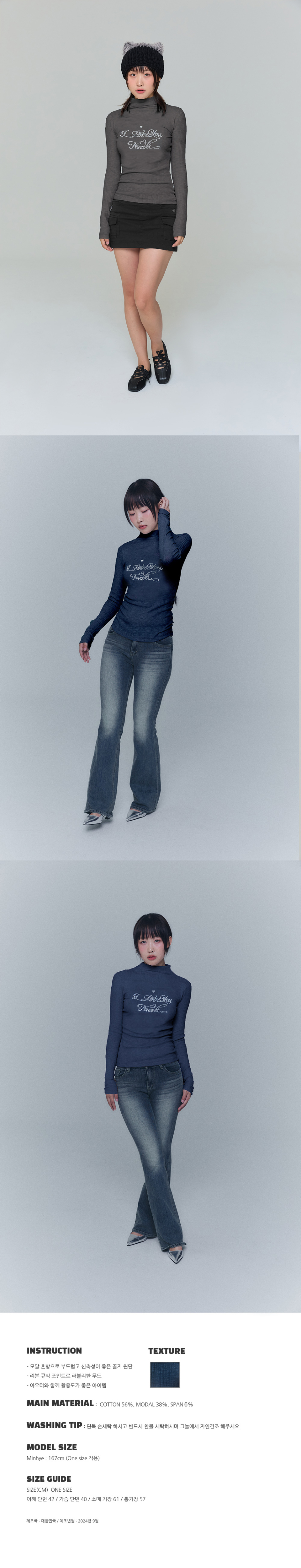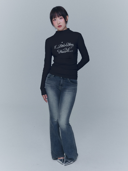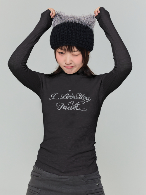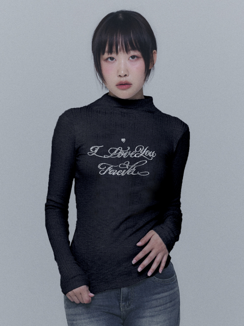 리본 큐빅 터틀넥 티셔츠 - 블랙, 네이비