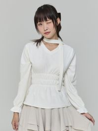 벨벳 스카프 셔링 탑 - 아이보리