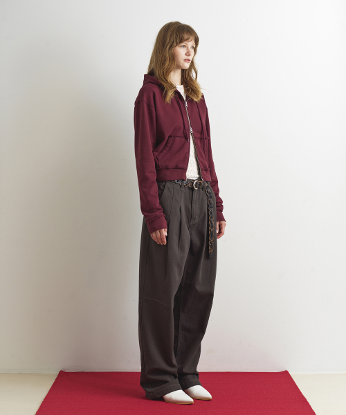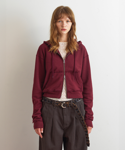 RAW CUT HOODIE ZIP-UP - WINE