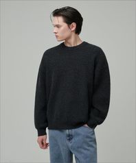 오버사이즈 리브드 크루 넥 니트 [차콜 그레이]