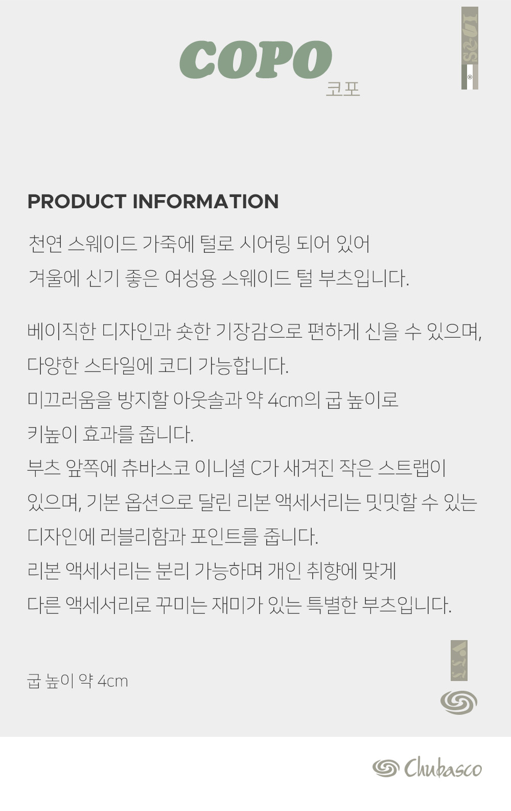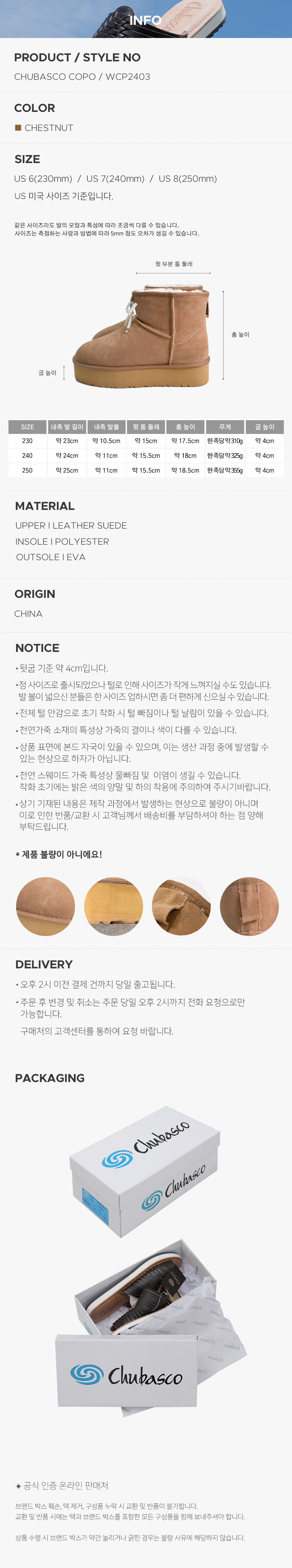 CHUBASCO WINTER FUR BOOTS COPO WCP2403 CHESTNUT (진주 리본 제공)