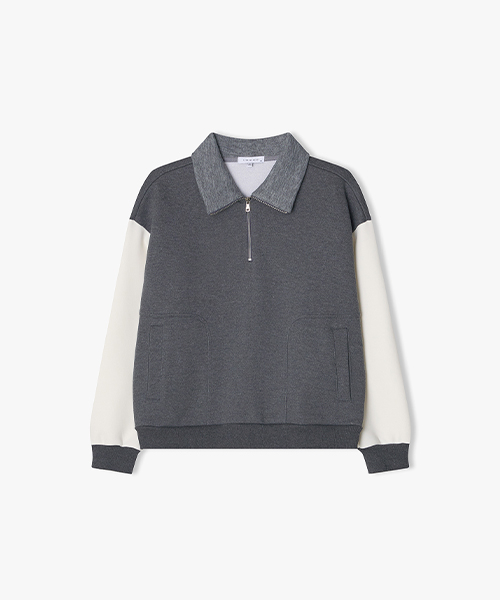 [24FW] LKW41452 그레이 스타디움 하프집업 티셔츠