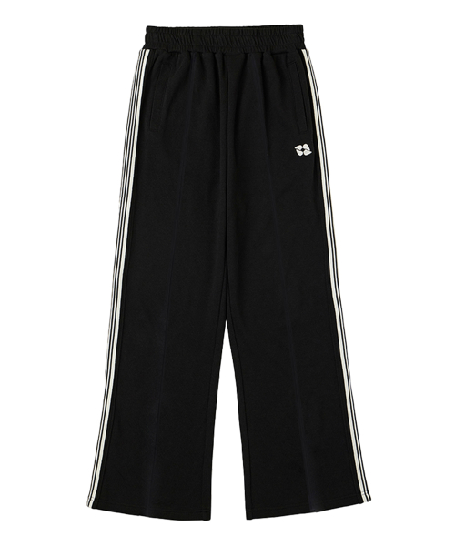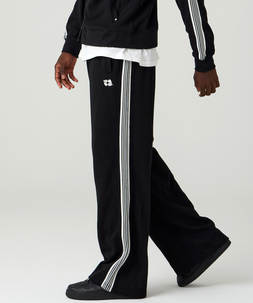 원턱 투 라인 와이드 스웨트팬츠 블랙