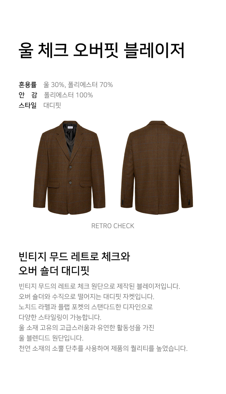 울 체크 오버핏 블레이저 (RETRO CHECK)