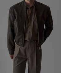 크롭 스탠드카라 레더 자켓 [브라운]