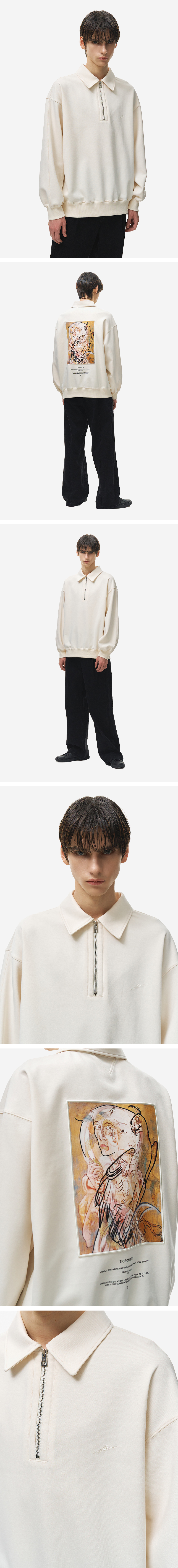 - 뒷면 넥 하단에 삼각 절개 무 디테일