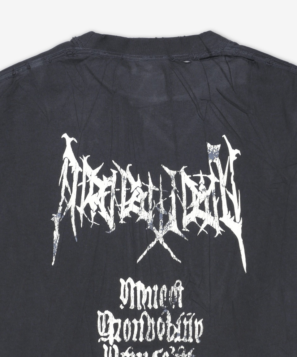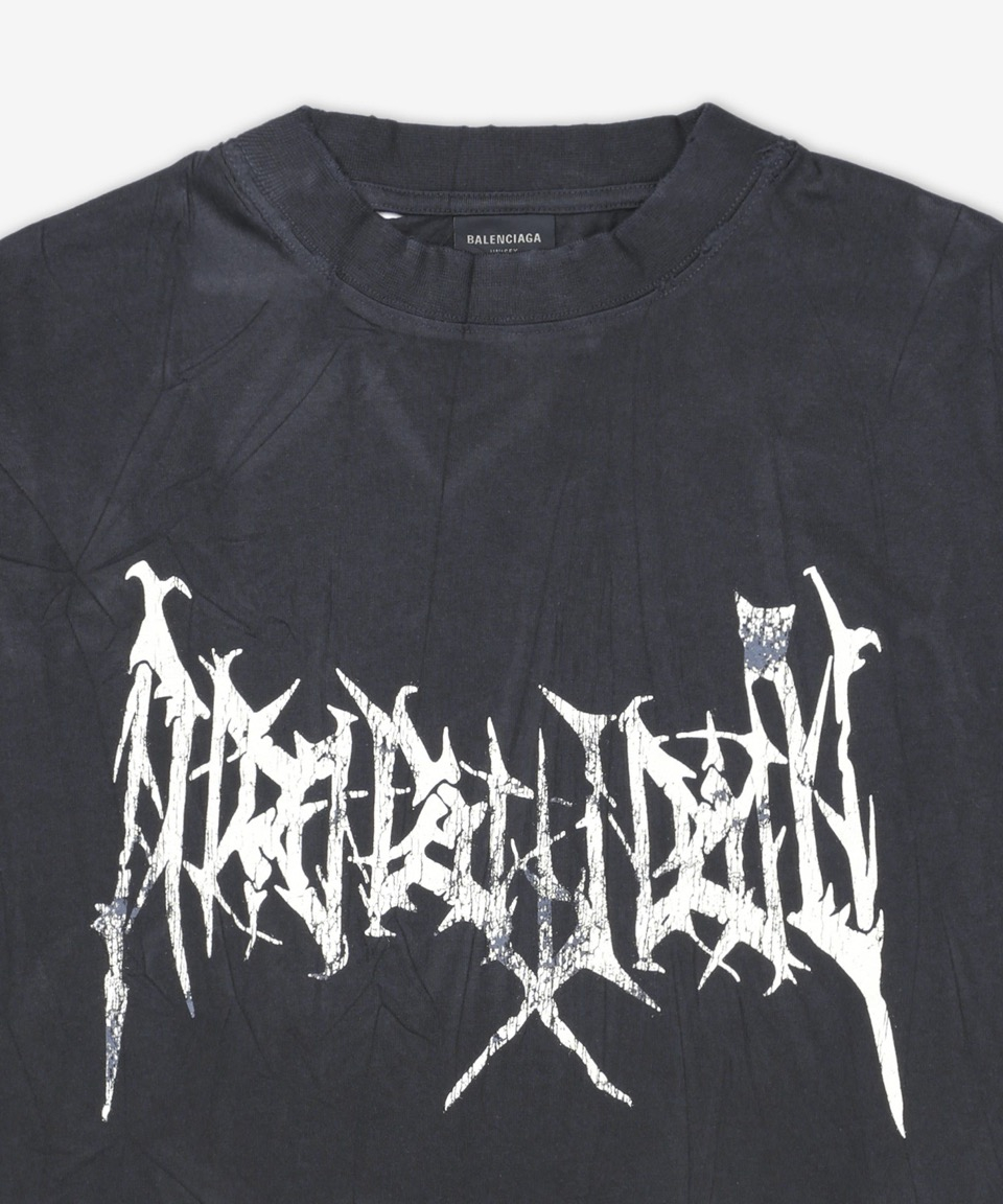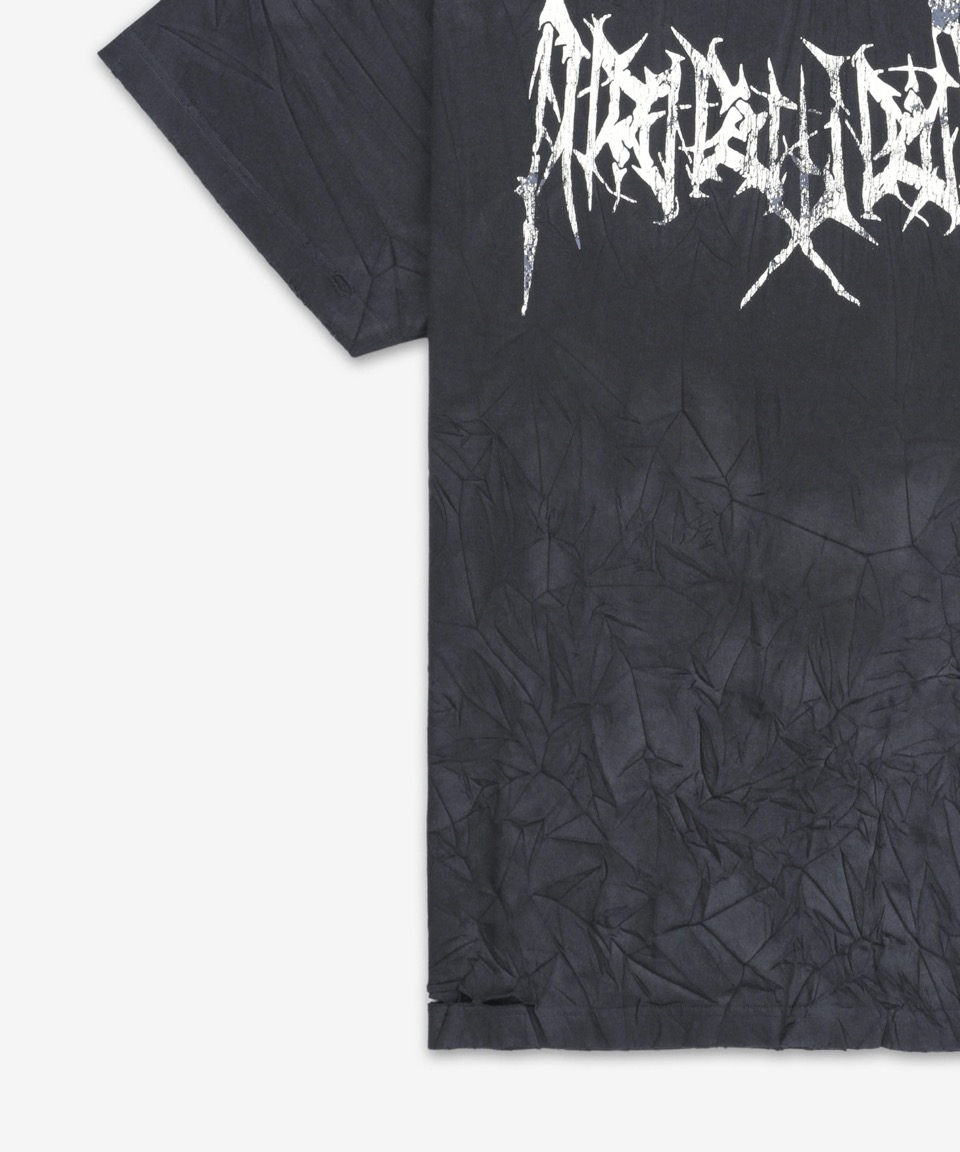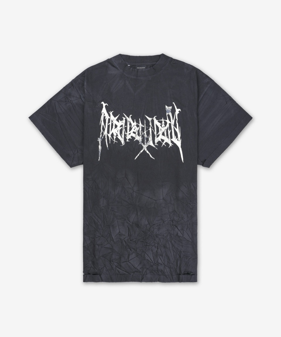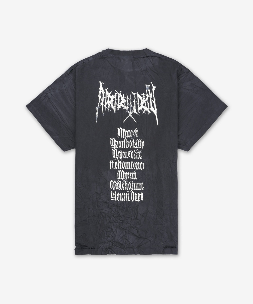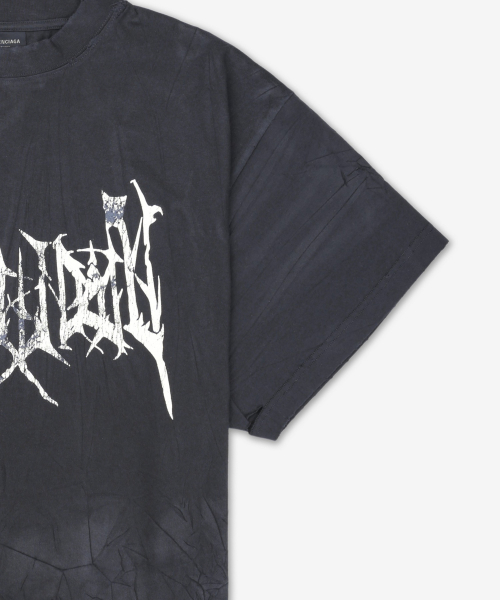 오버사이즈 반소매 티셔츠 - 워시드 블랙:화이트 / 787349TRVF99034