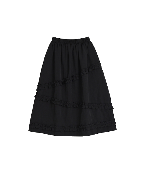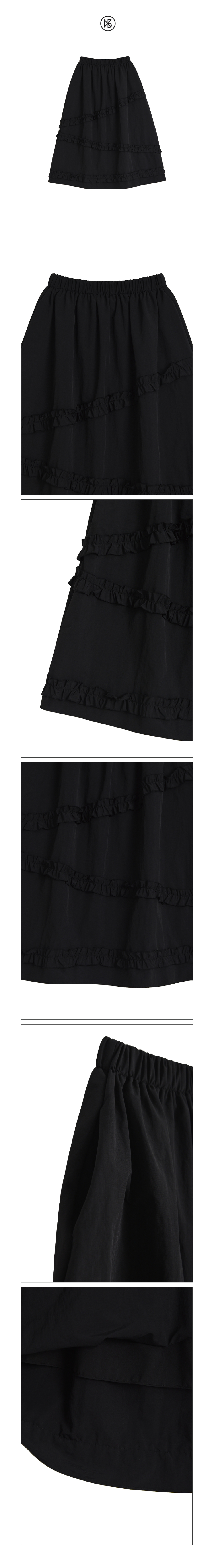 나일론 프릴 캉캉 롱 스커트_블랙