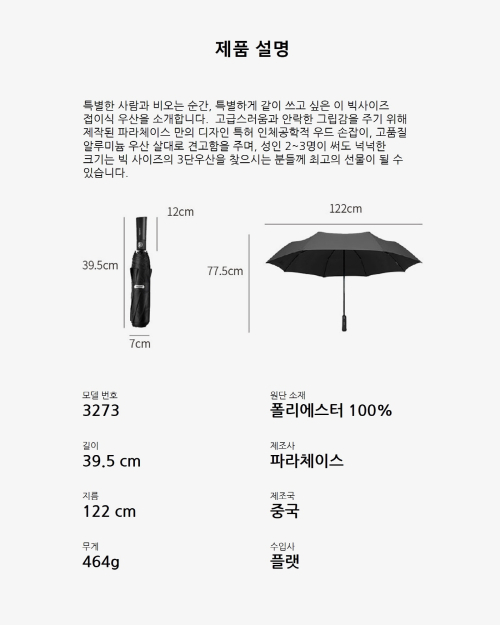 3273 프리미엄 빅사이즈 자동 3단 우산