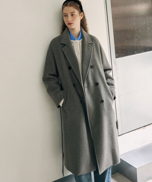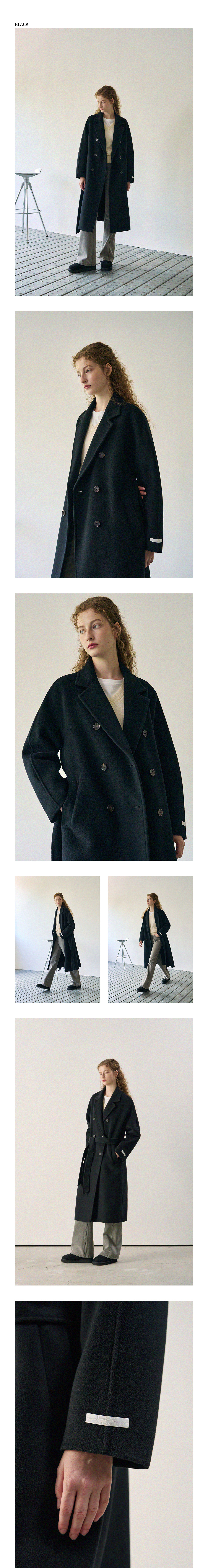 울 핸드메이드 더블 롱코트 [BLACK]