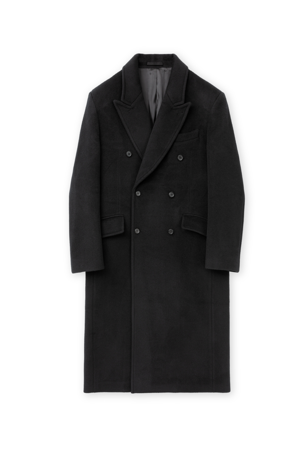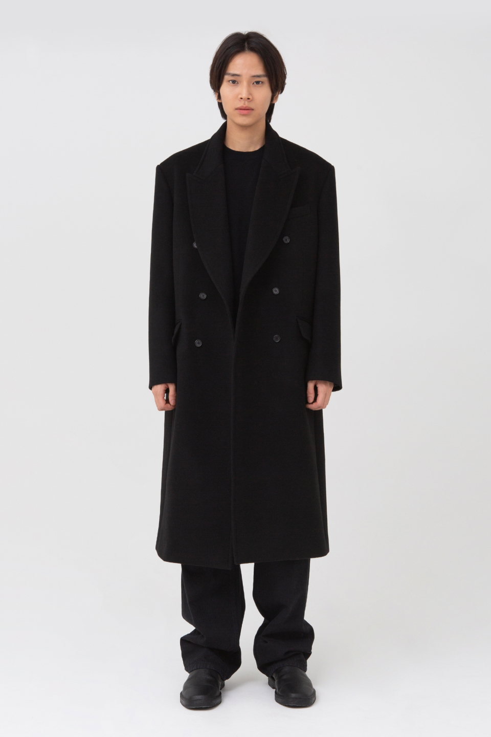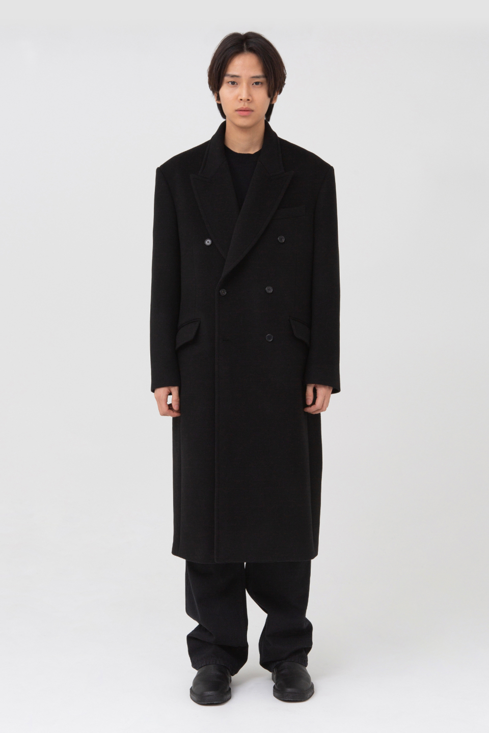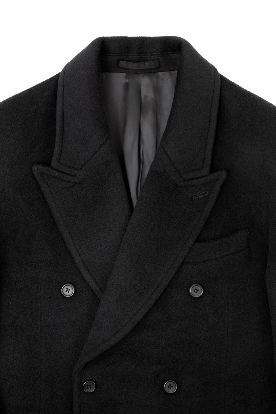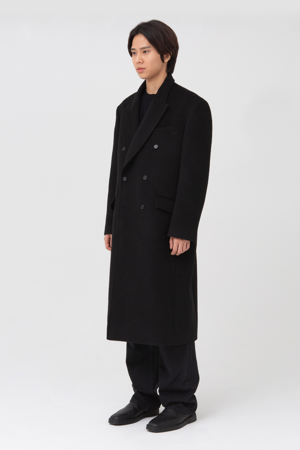 피크드 라펠 형태의 클래식하지만 스티치 디테일로 캐주얼한 무드를 가지고 있는 더블 브레스티드 코트입니다.