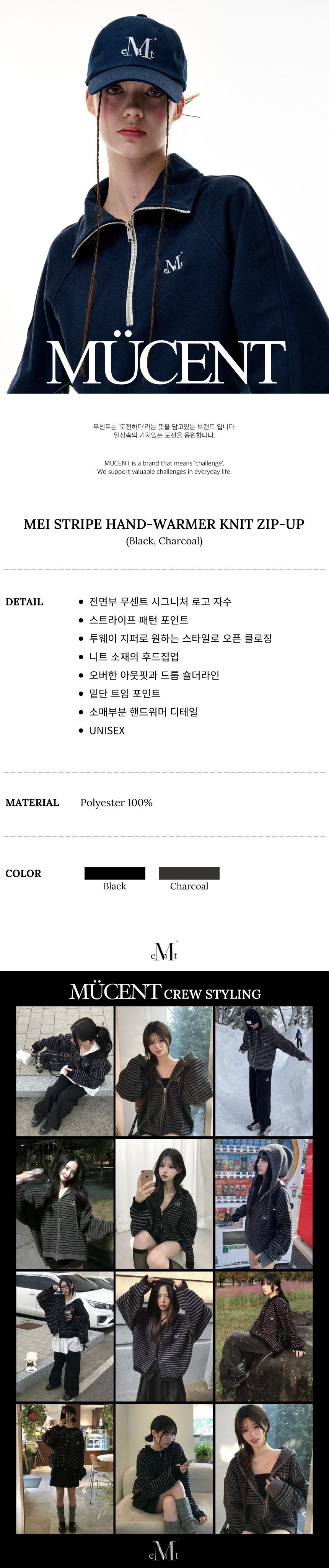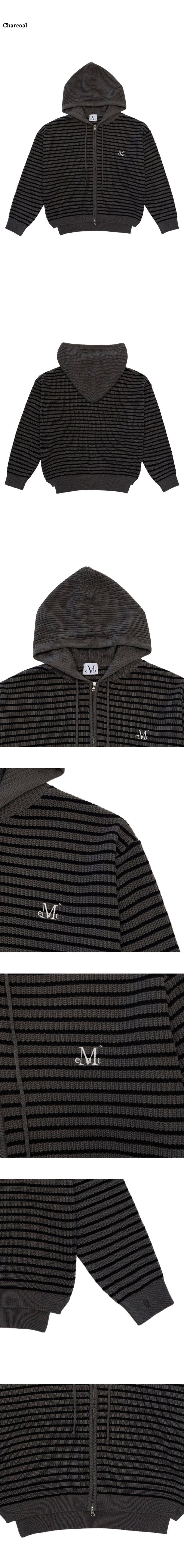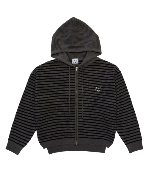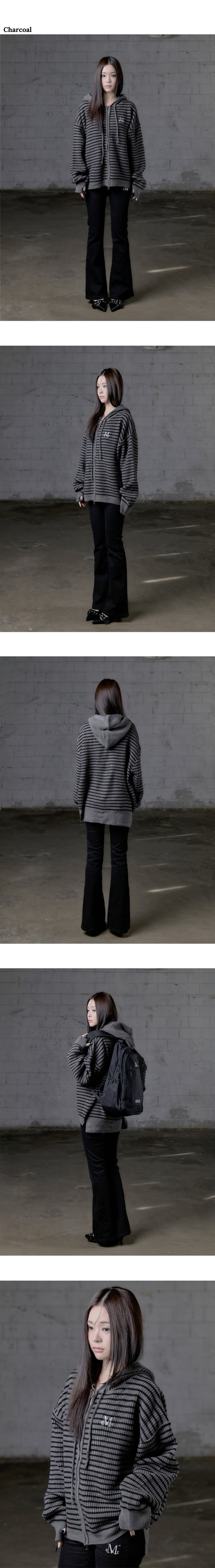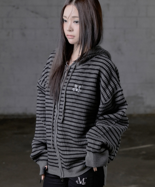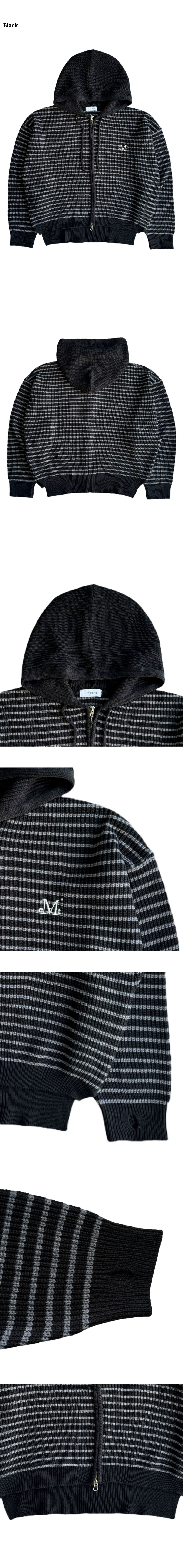 메이 오버핏 스트라이프 핸드워머 니트 후드 집업 남녀공용 (2컬러)