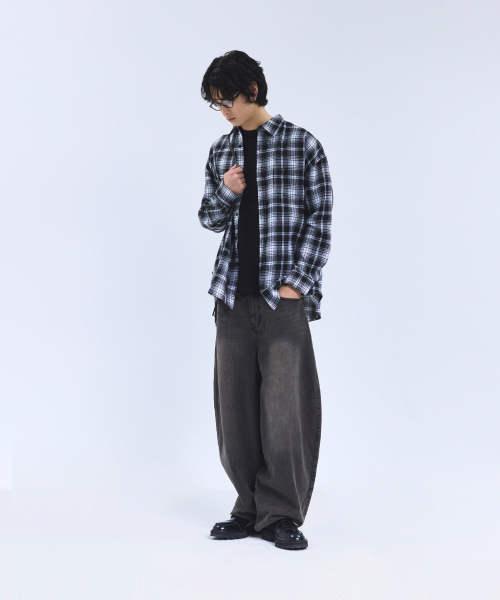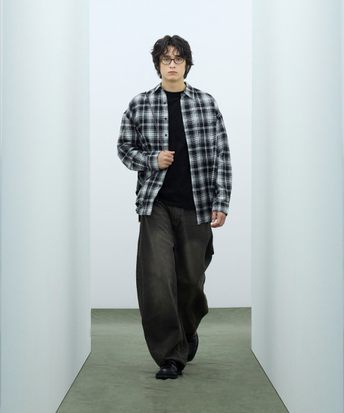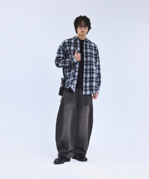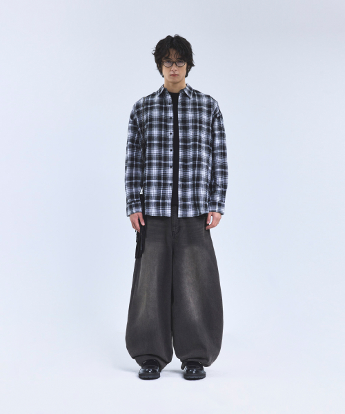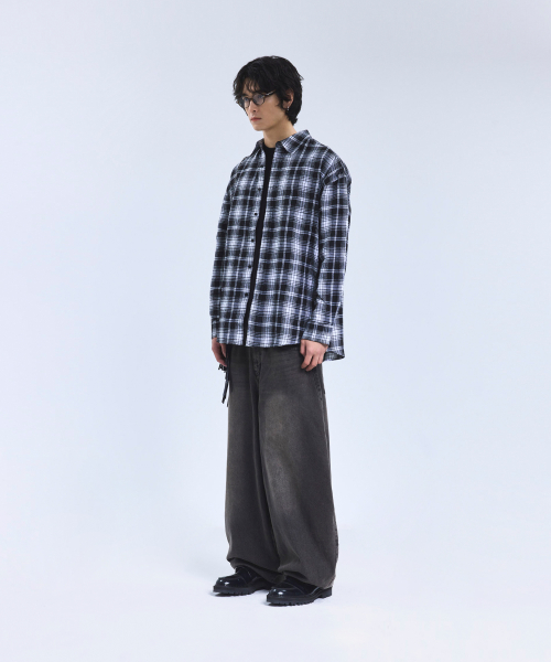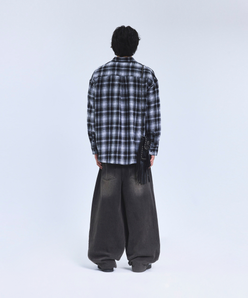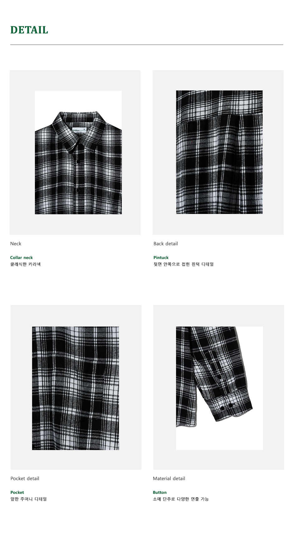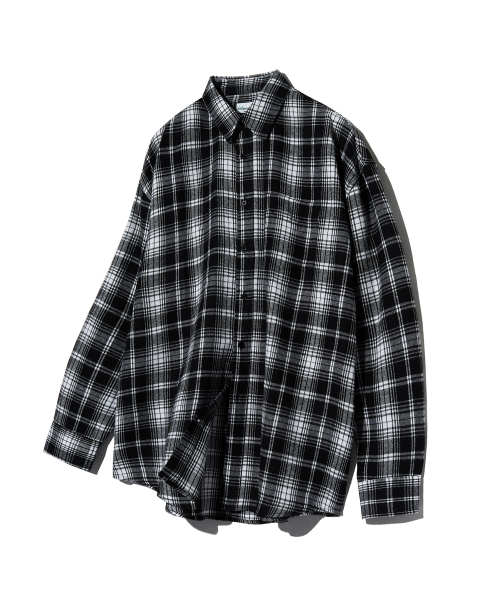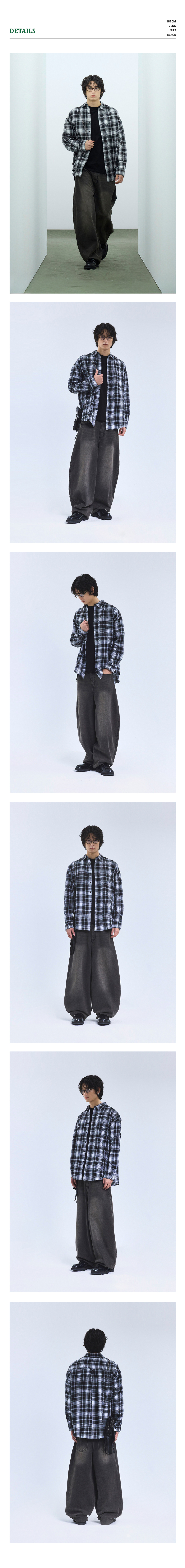 87-STAN080 뉴트럴 팜 오버핏 포켓 긴팔 체크 셔츠 블랙