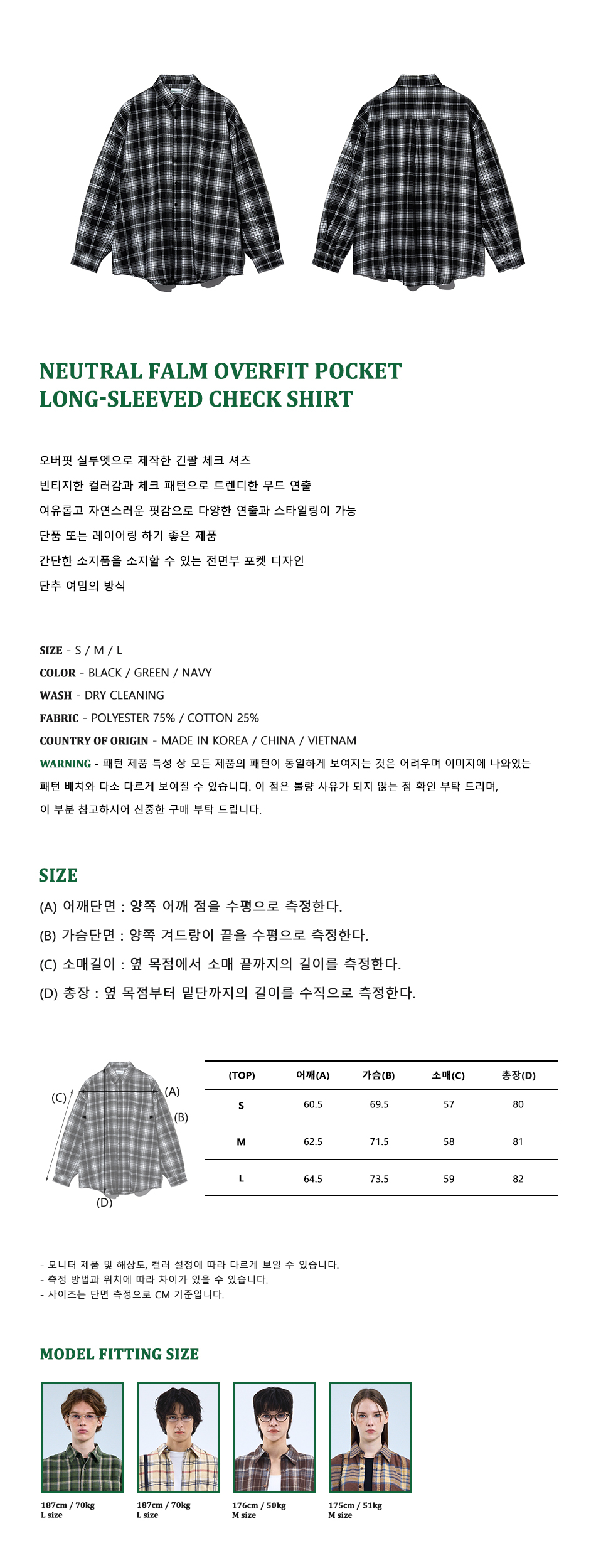87-STAN080 뉴트럴 팜 오버핏 포켓 긴팔 체크 셔츠
