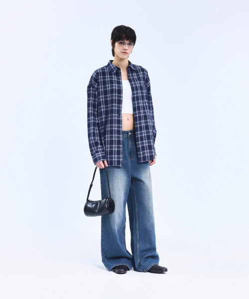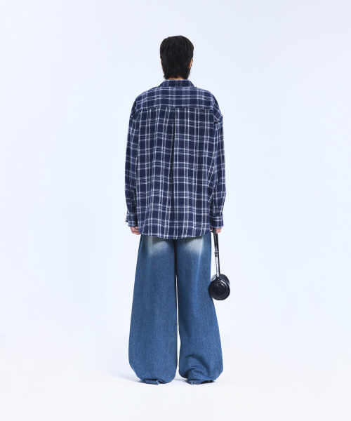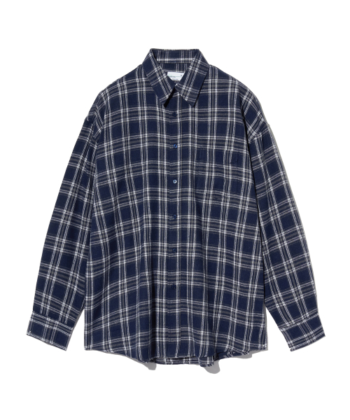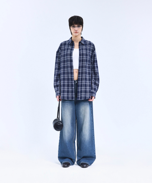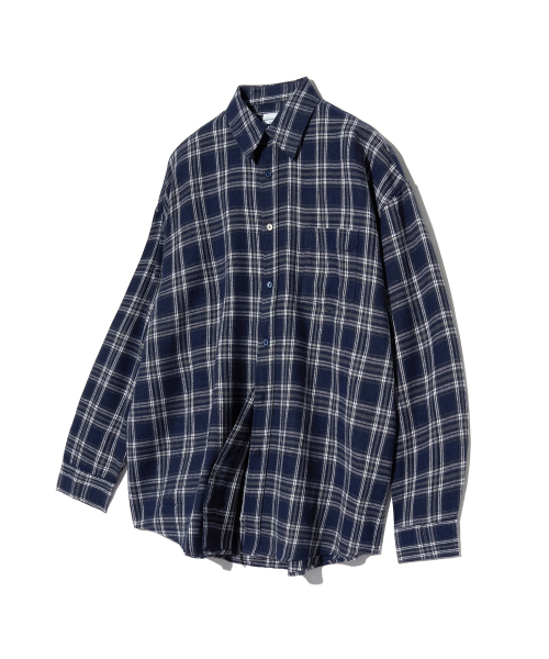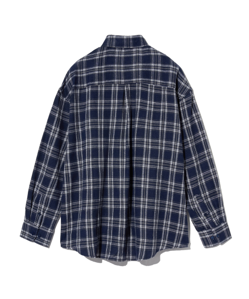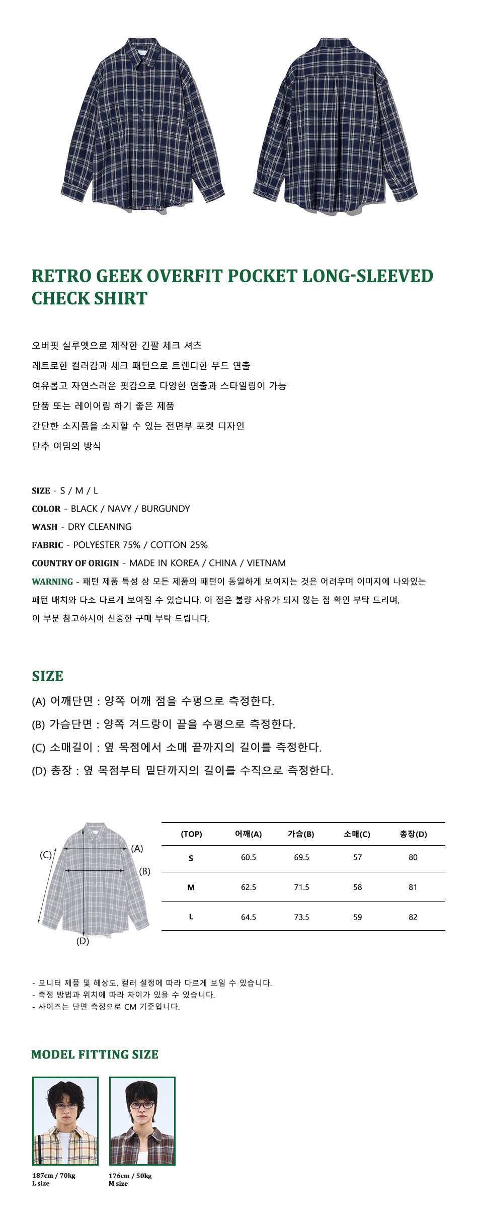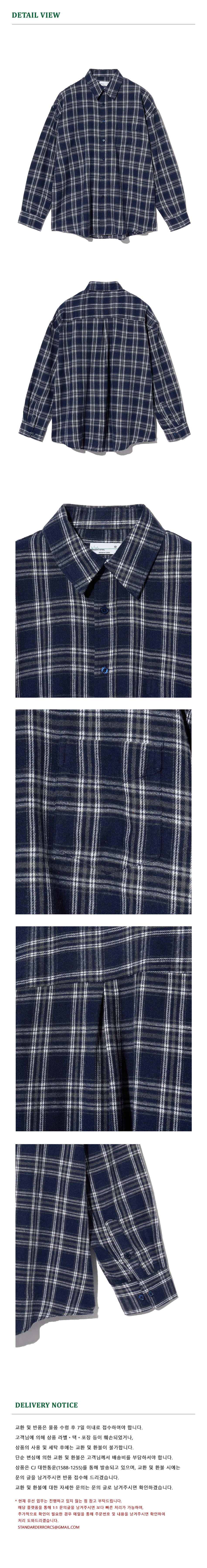 87-STAN135 레트로 긱 오버핏 포켓 긴팔 체크 셔츠 네이비