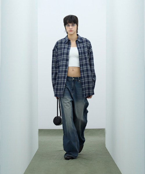 87-STAN083 레트로 플레이드 오버핏 포켓 긴팔 체크 셔츠