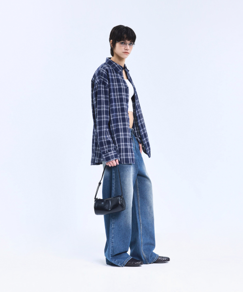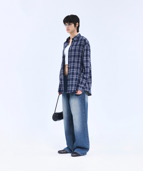 87-STAN081 원포켓 빈티지 오버핏 긴팔 체크 셔츠 블루
