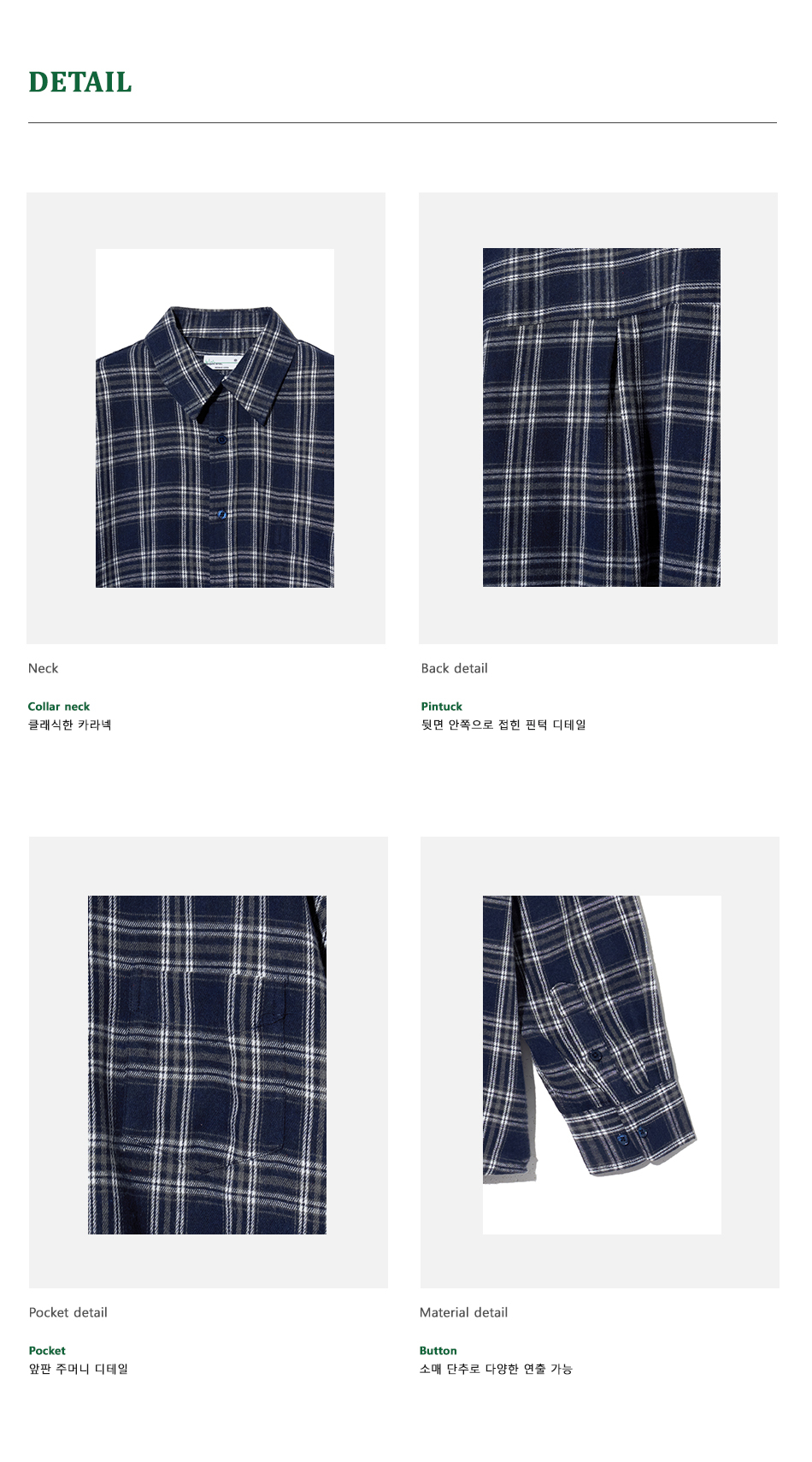레트로 오버핏 코튼 플란넬 포켓 체크 셔츠 [그린]