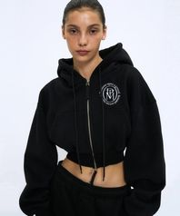 엔젤 아플리케 크롭 후드 집업[블랙]