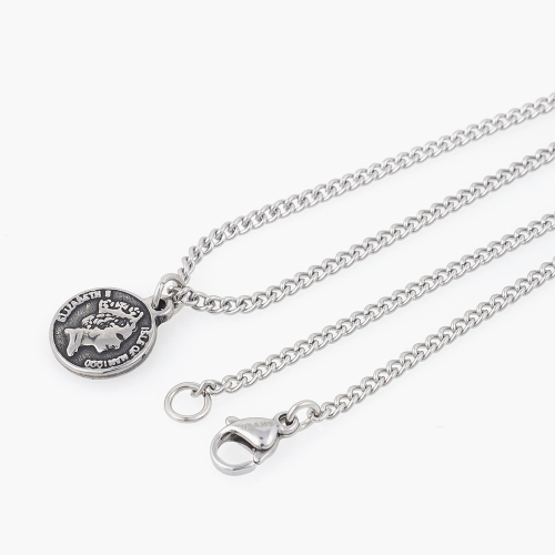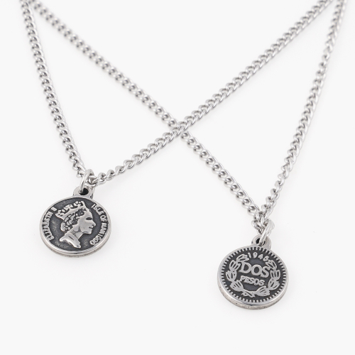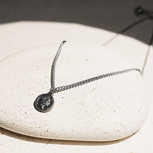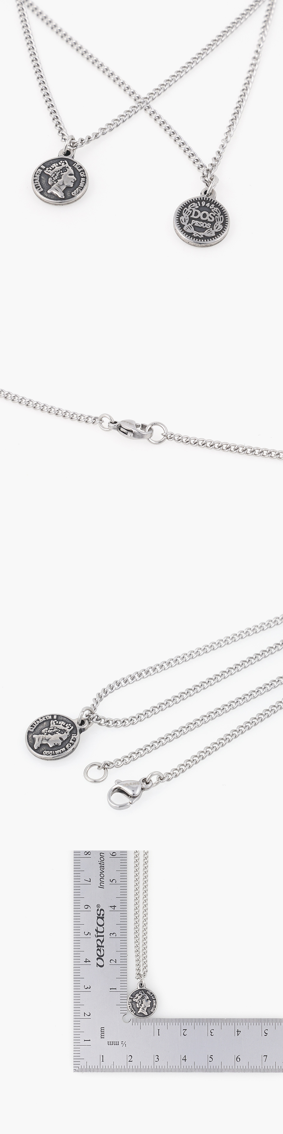 미니멀한 DOS코인 팬던트가 메인으로 자리한 써지컬 스틸 체인 목걸이입니다.