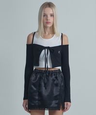 Off-shoulder Ribbon Cardigan-Black