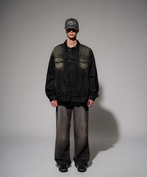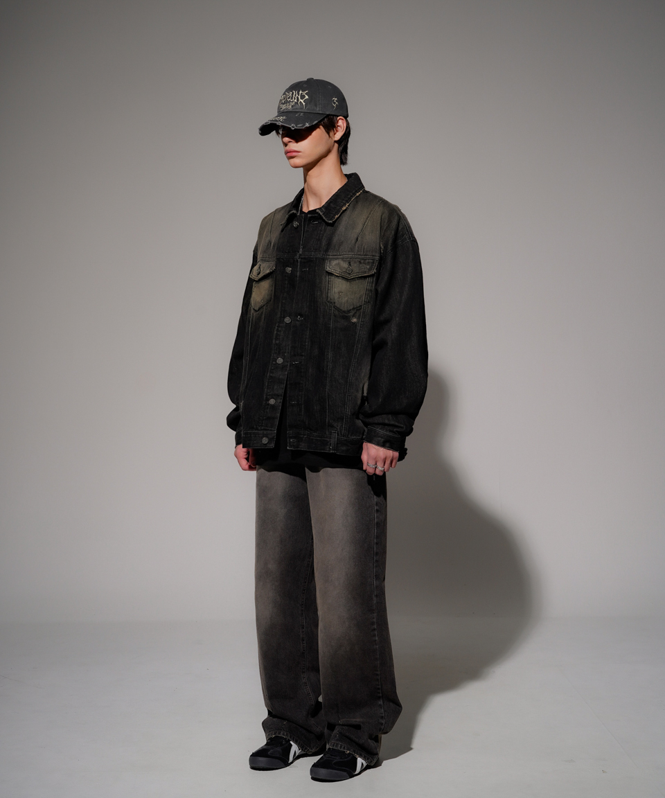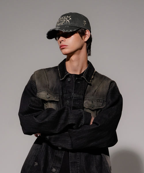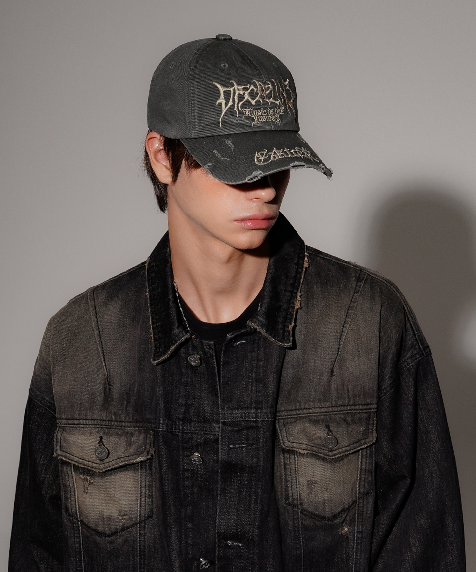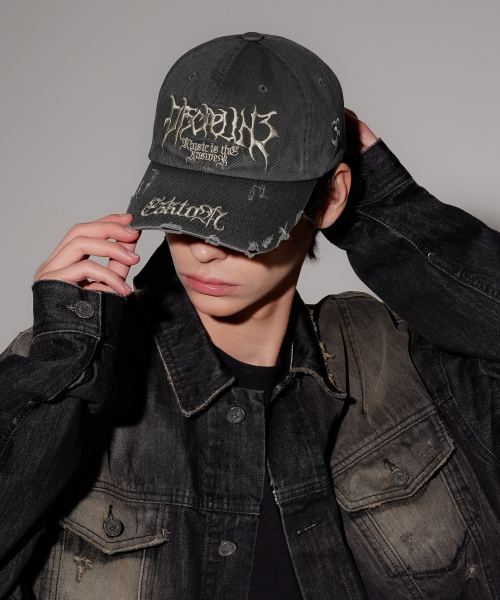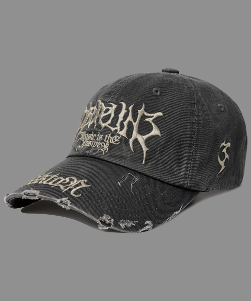 포인티드 데미지 볼캡 딥그레이 KMAC6839