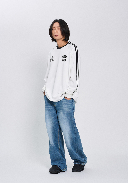 오버핏 트랙 스포티 유니폼 스웨트 셔츠 - 파스텔 블루