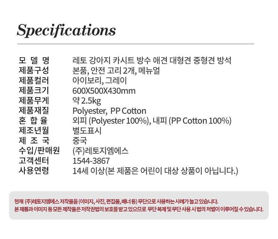분리형 방수 강아지 카시트