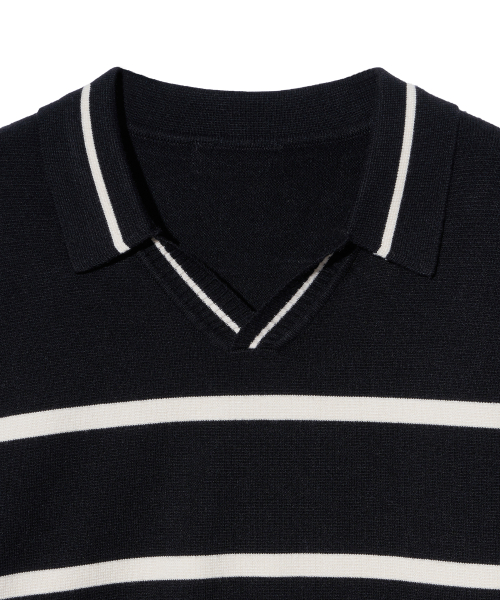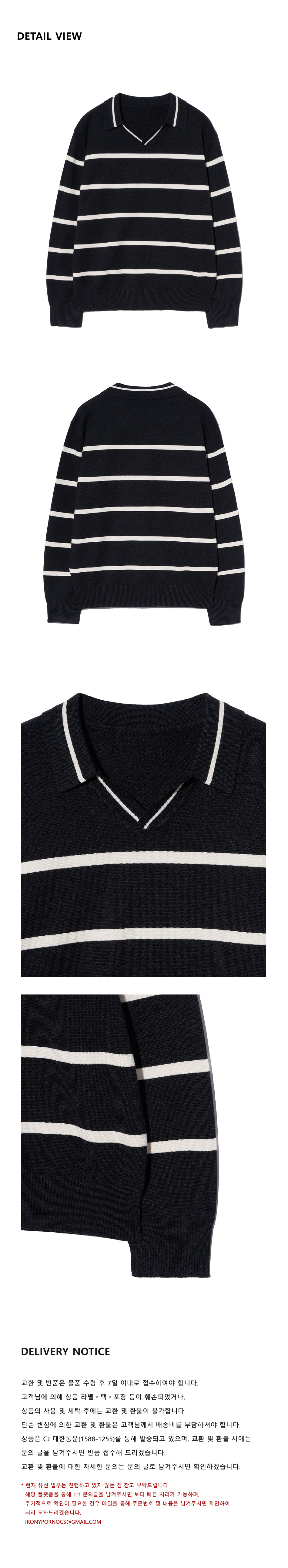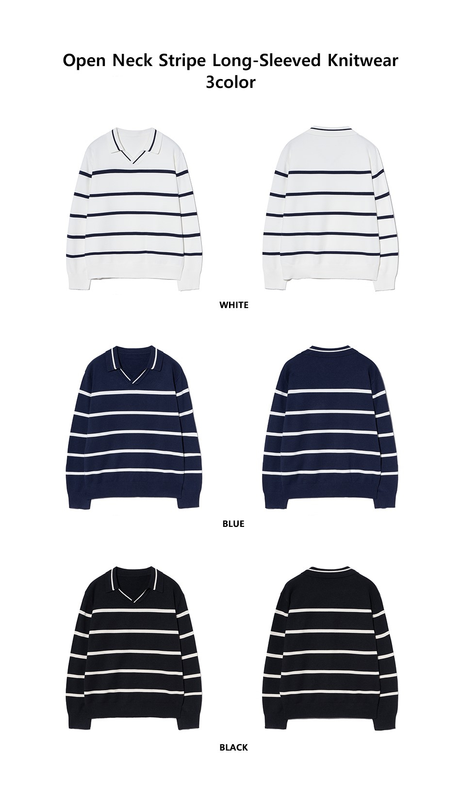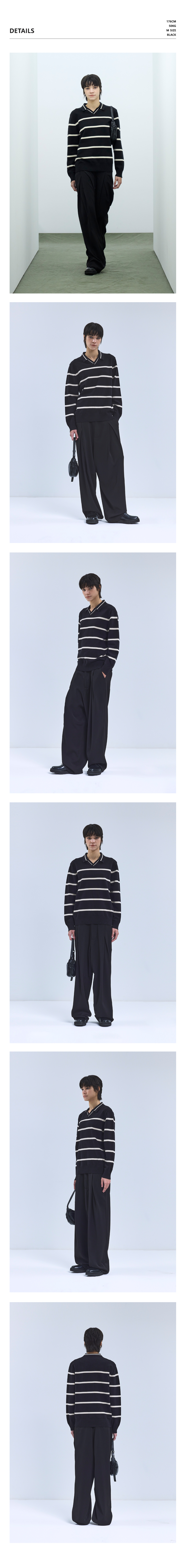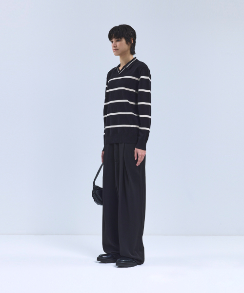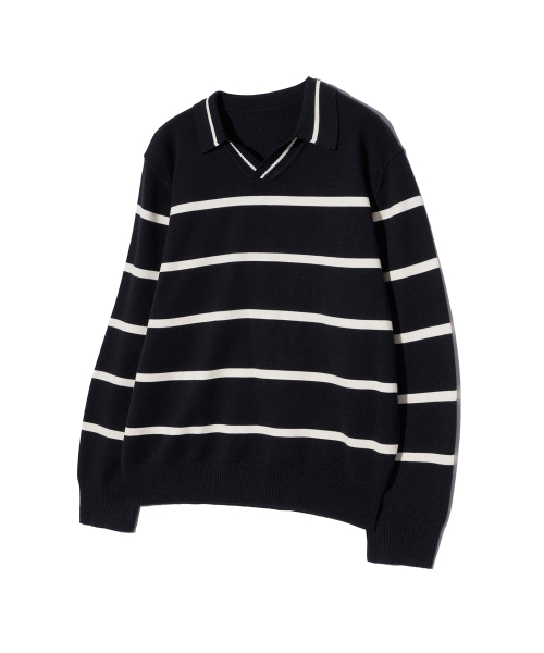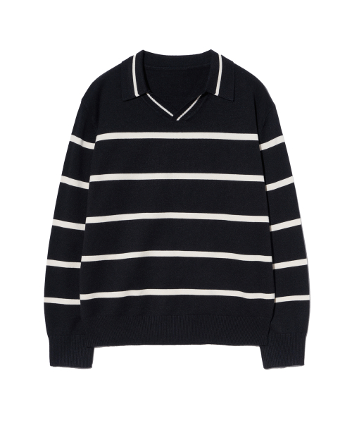 86-IROJ365 오픈넥 스트라이프 긴팔 니트 블랙