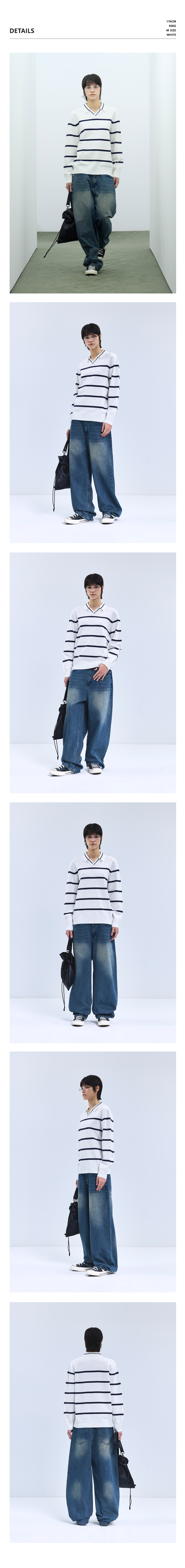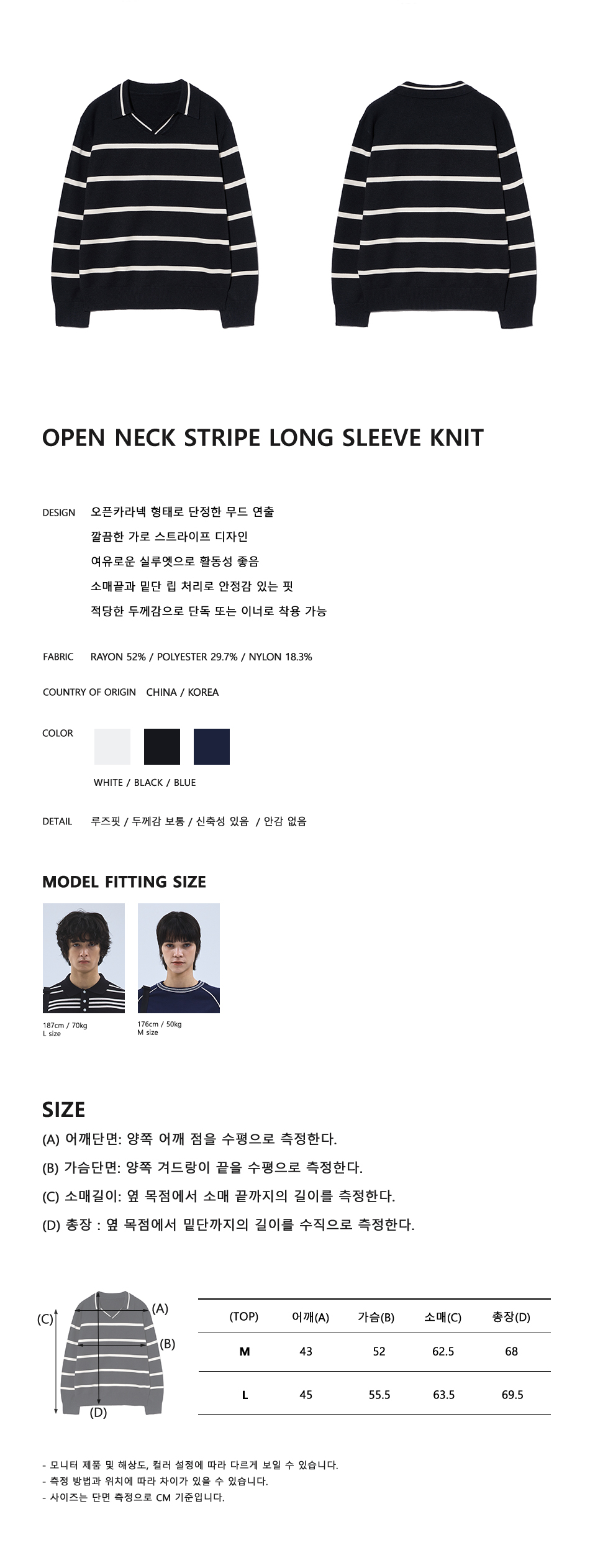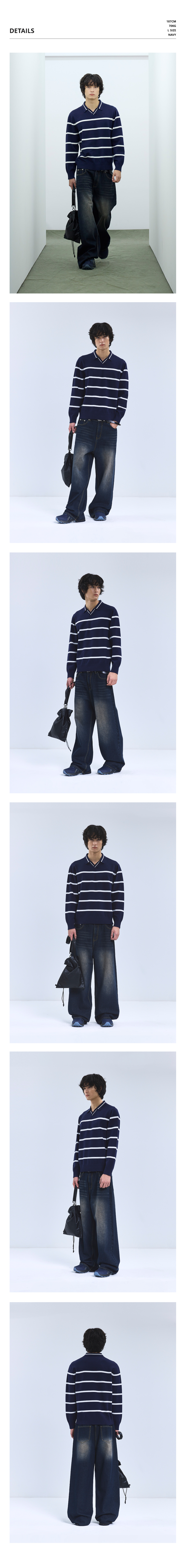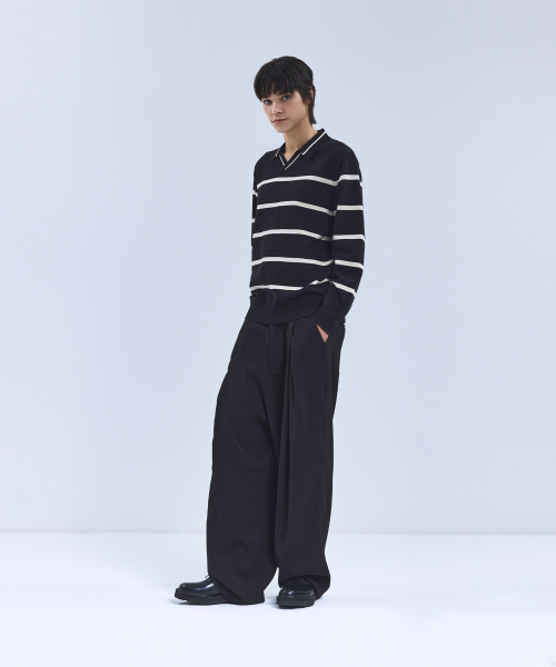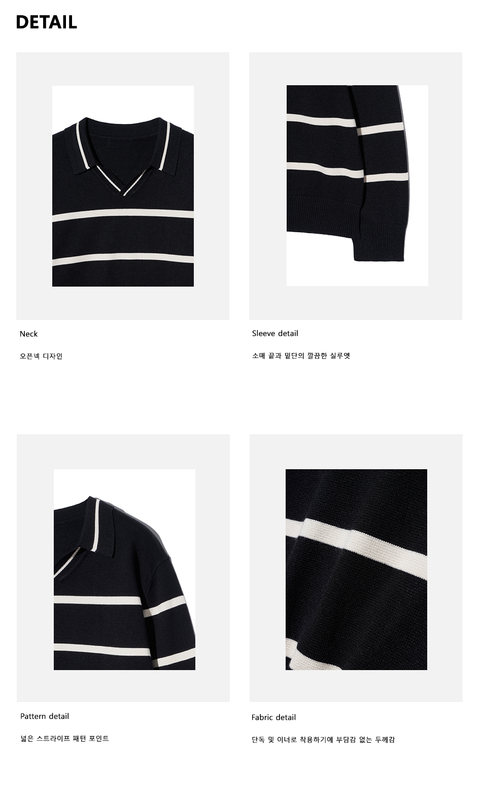 86-IROJ365 오픈넥 스트라이프 긴팔 니트 블랙