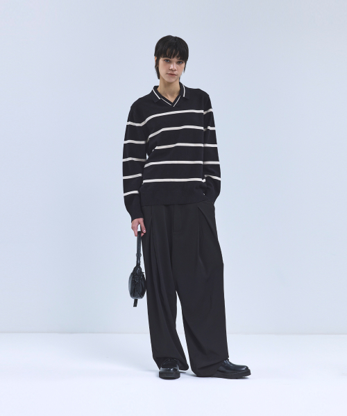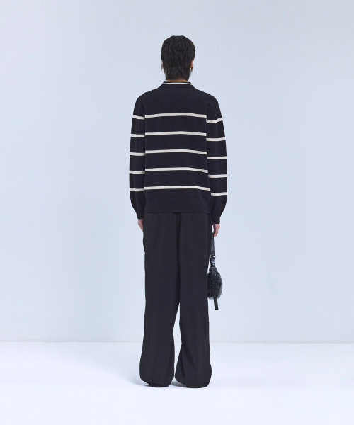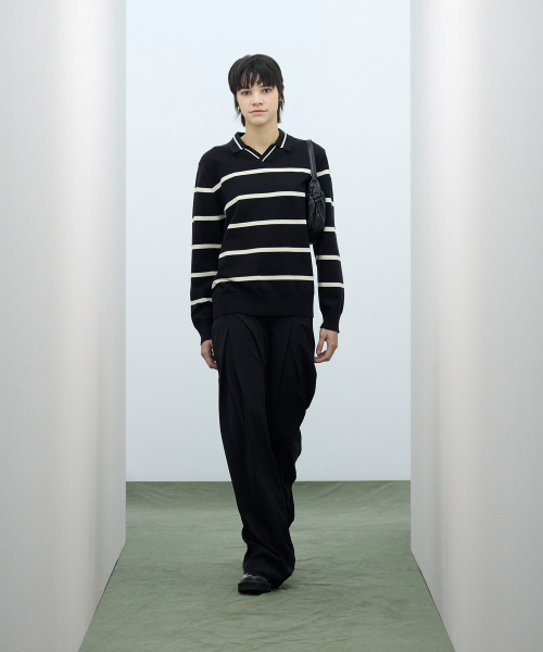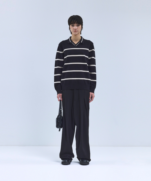 (W) 스트라이프 패턴 카라 니트
