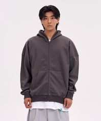 오버핏 와이드 숄더 후드 집업_차콜