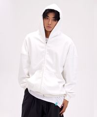 오버핏 와이드 숄더 후드 집업_화이트