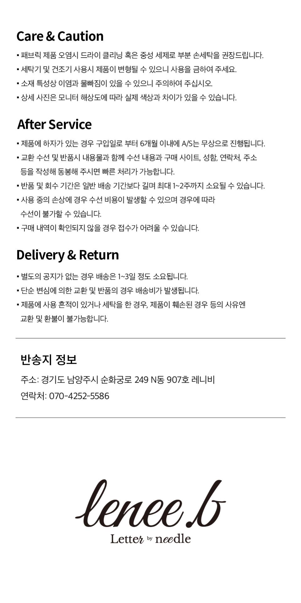 레니비(LeneeB)는 마음이 담긴 물건을 만드는 브랜드입니다.