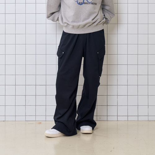 사선 카고 포켓 팬츠_블랙
