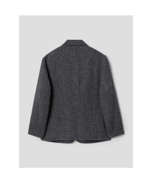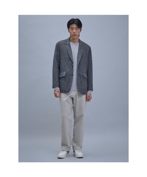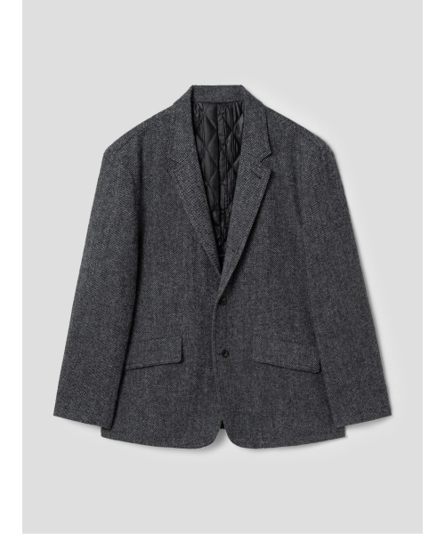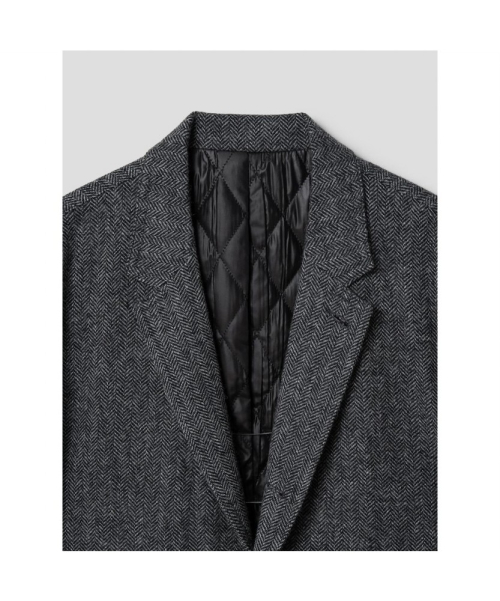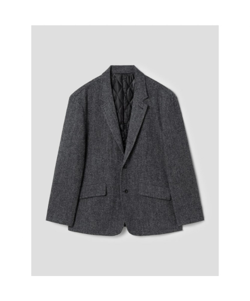 영국 문(MOON) 사의 셰틀랜드 울 혼방 원단으로 만든 에디터 재킷입니다. 셰틀랜드 소재 특유의 털이 느껴지는 질감과 세련된 헤링본 패턴이 특징인 아이템입니다. 내부에는 패딩 사양을 적용하여 겨울철에도 착용하기 좋습니다. 여유로운 실루엣으로 제작되어 다양한 이너와 함께 편안하게 입을 수 있습니다.