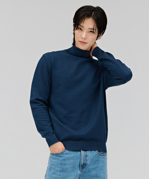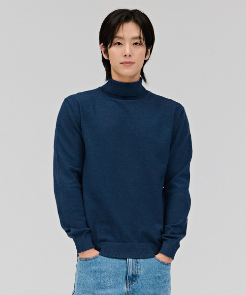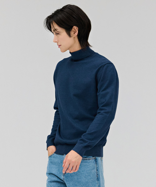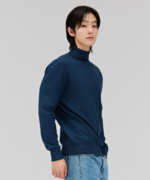 남성 에센셜 터틀넥 스웨터-네이비