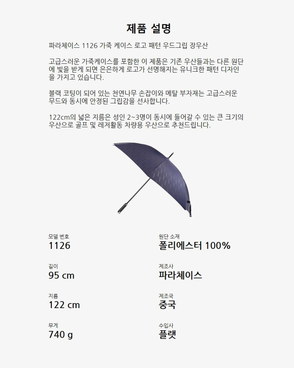 1126 가죽 케이스 로고 패턴 우드그립 장우산