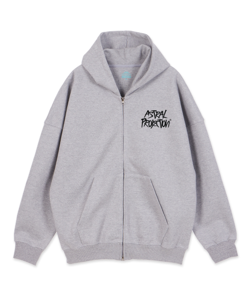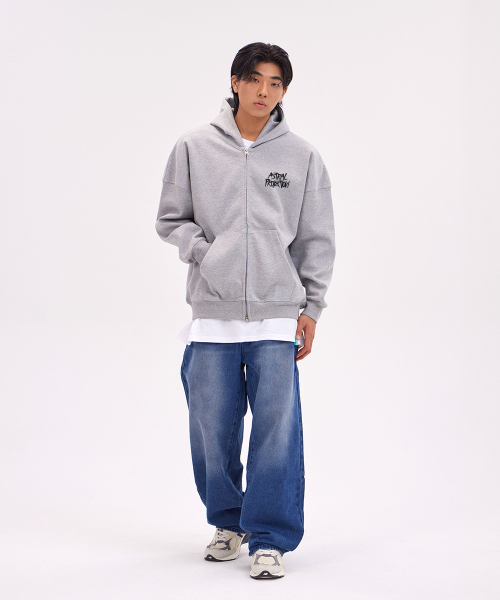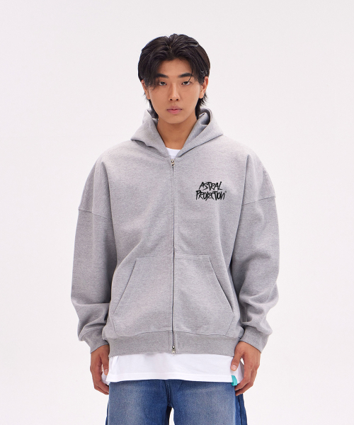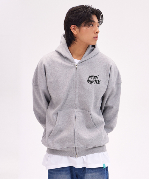 그래피티 레터링 오버핏 와이드 숄더 후드 집업_멜란지