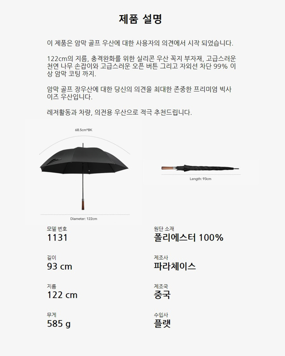 3284 곡자 우드그립 대형 자동 3단 암막 양우산