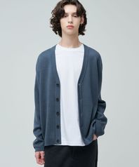 [스토커즈 컬래버] [빅토리아 울] 미니멀 리브드 브이 넥 가디건 [네이비]