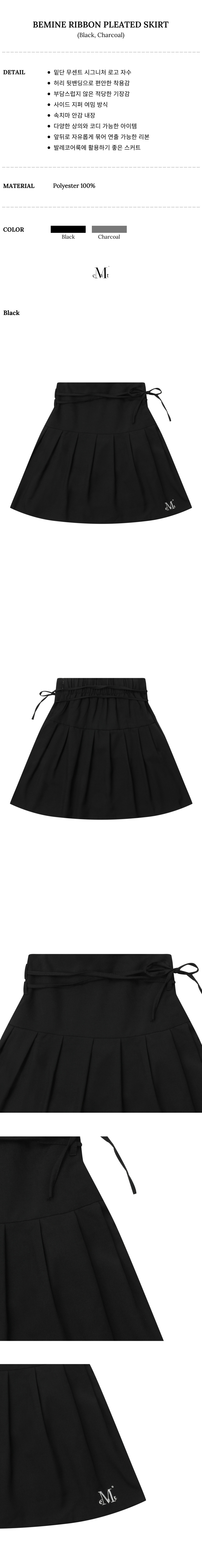 비마인 뒷밴딩 리본 플리츠 스커트 (2컬러)