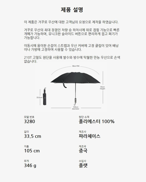 3280 거꾸로 개폐 자동 3단 우산