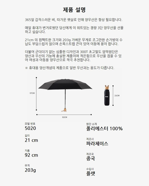 5021 우드그립 경량 5단 우양산