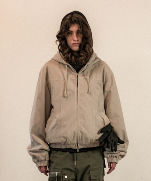DYED HOODED WORK JACKET SAND