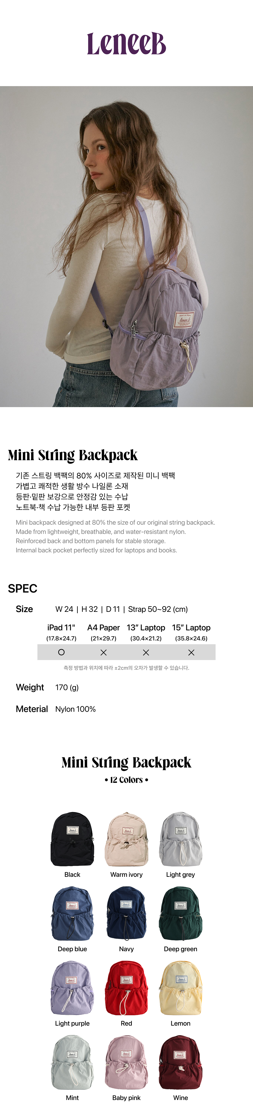 미니 스트링 백팩 라이트퍼플